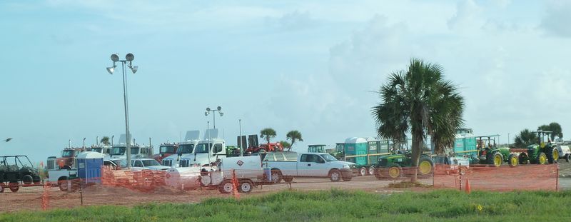 Nearby was a large temporary yard full of equipment that had been used to clean the beach, earth-moving machines, bins, portable toilets. (It's easier to clean a beach than a marsh.)
