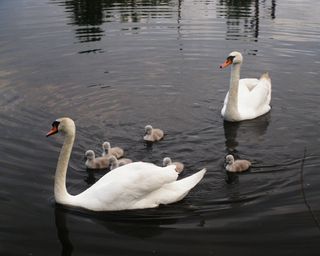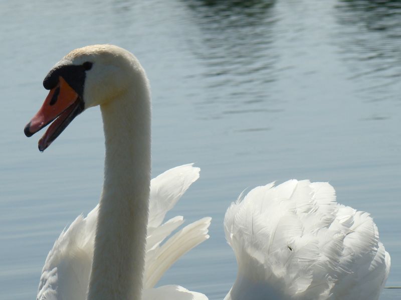 Swans are big. And grumpy. Not only do they hiss and bite, but with their wings they can hit very hard, so hard that it is said they can break human bones. People are charmed by the fact that swans are devoted spouses and parents, but one way swans express that is by beating up anyone who comes too close to their family.