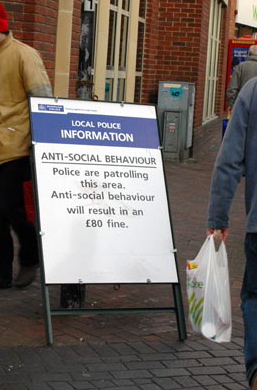 “Asbo” is short for Anti-Social Behaviour Order. That’s an order under which a troublesome person is kept out of certain areas, or forbidden to do certain things. (Not the Queen’s idea, Tony Blair’s idea.) Apparently anti-social behavior can include such things as public drunkenness, vandalism, a type of breakdancing called windmilling, spitting, and of course, attacking canoes.