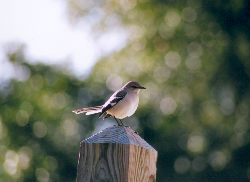A mockingbird was atop a high pole, running through his imitations. Starting with some killdeer calls.